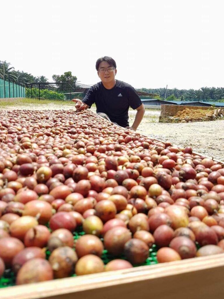 My Liberica, a company that today encompasses a farm, processing facility, and four coffee shops, has its origins in producer and roaster Jason Liew’s passion for coffee. “Twenty years ago, my father first started growing Liberica coffee. Like so many coffee farms, ours is located just a few meters above sea level. Although Malaysia lies along the coffee belt, our soil is largely unsuitable for Arabica cultivation,” Jason explains. The robust Liberica plant thrives at low altitudes – even on clay or peat soils – and adapts well to its environment. This is why it has prevailed in Malaysia, accounting for a remarkable 90 percent of coffee cultivation. Unlike Arabica, Liberica depends on cross-pollination. “On our farm, we have no control over which pollen our Liberica trees receive. In terms of taste, however, this doesn’t have major effects,” Jason adds. “Fermentation plays a bigger role here.”
